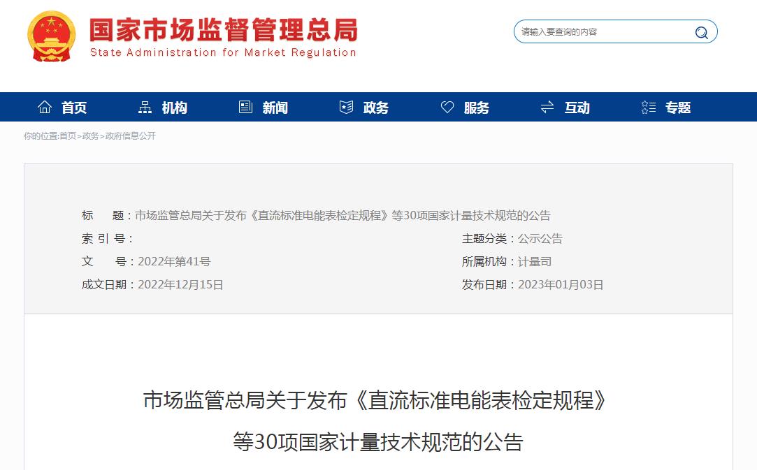 2023年1月3日,市场监管总局官方发布相关公告,宣布批准30项国家计量技术规范发布实施。