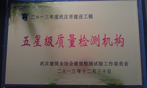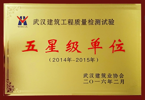 20182019武汉五星检测单位证书