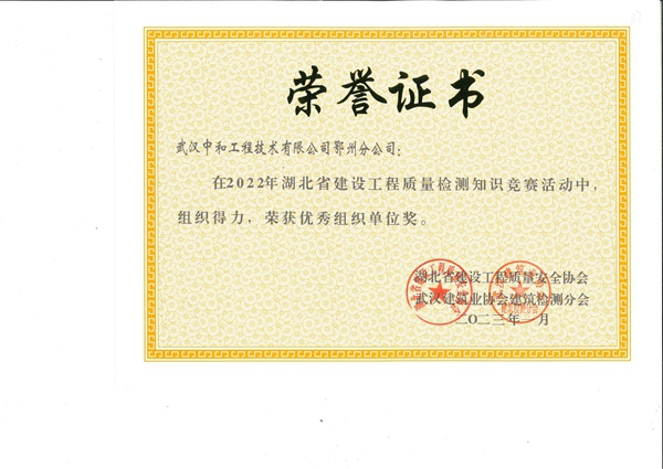 武汉中和2022省检测知识竞赛优秀组织奖